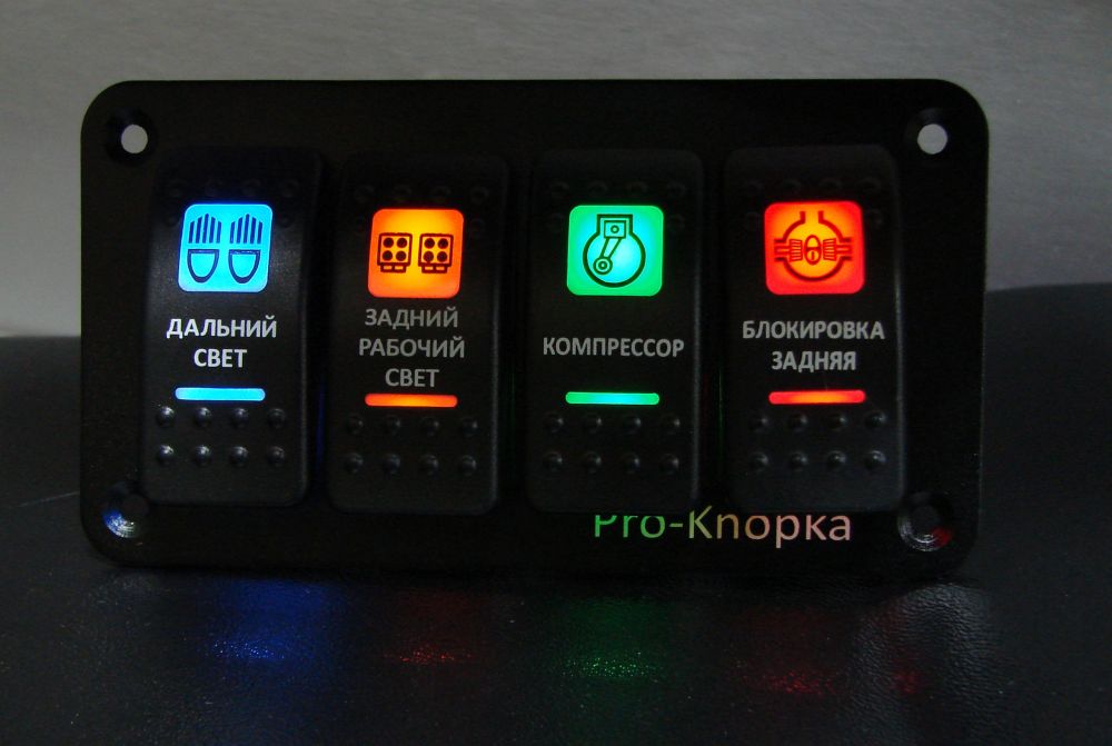 Схема подключения переключателя 4 контакта: (ВКЛ)-ОТКЛ-(ВКЛ)
