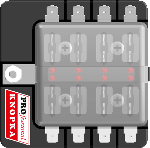 Силовые шины блока и зажимы предохранителей изготовлены из никелированной меди.
