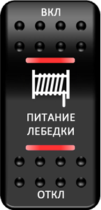 Переключатель Pro-Knopka, (ВКЛ)-ОТКЛ-(ВКЛ), Печать, верх/низ: Красный/Красный, "Питание лебедки"